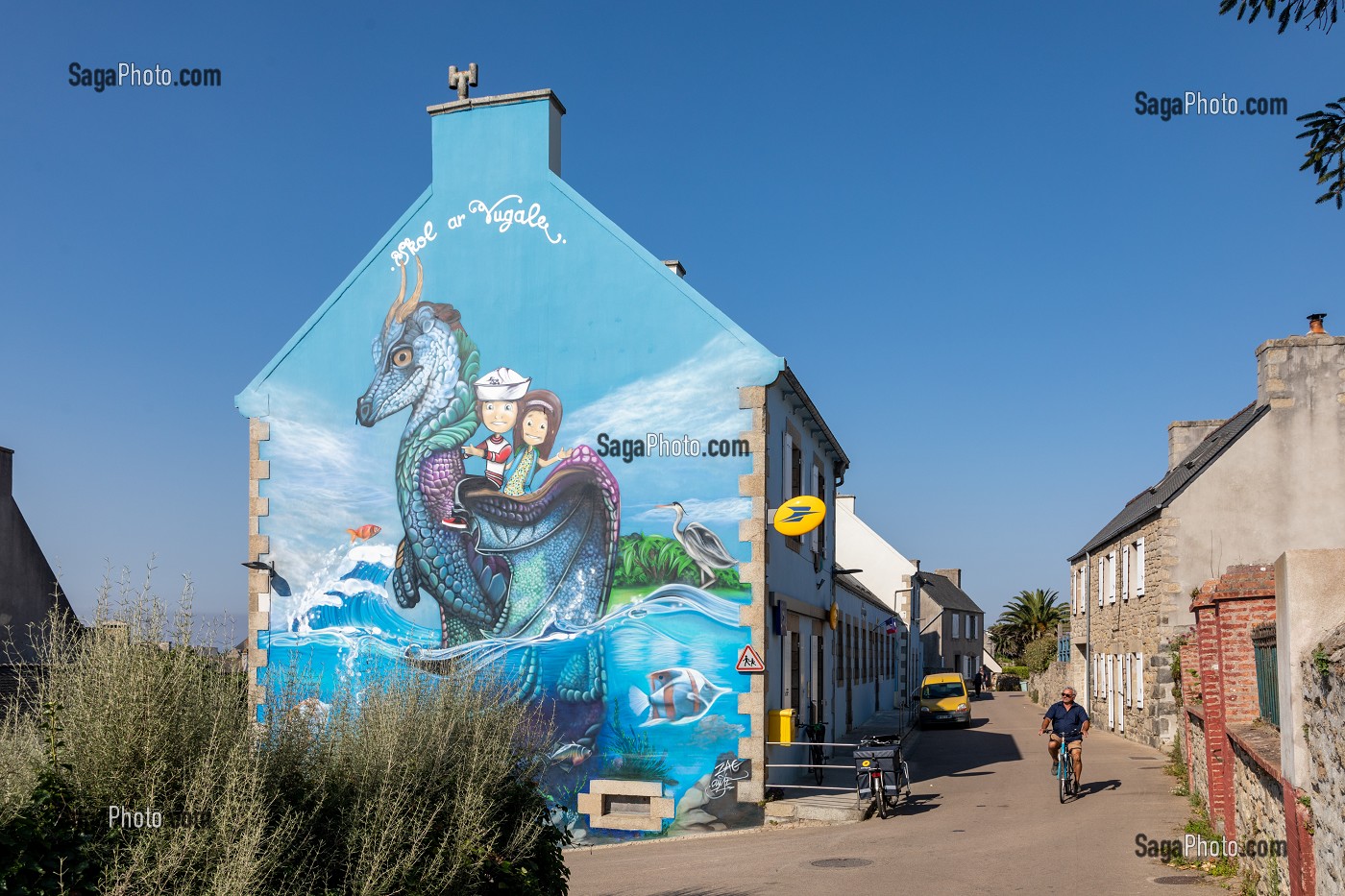 Mots clés : EUROPE, FRANCE, BRETAGNE, FINISTERE, ILE DE BATZ, ART URBAIN, PEINTURE MURALE, STREET ART, FRESQUE, INSOLITE, RUE, DRAGON, SERVICE PUBLIC, POSTE, PERSONNAGE, VELO, CYCLISTE, IMMOBILIER, HABITATION