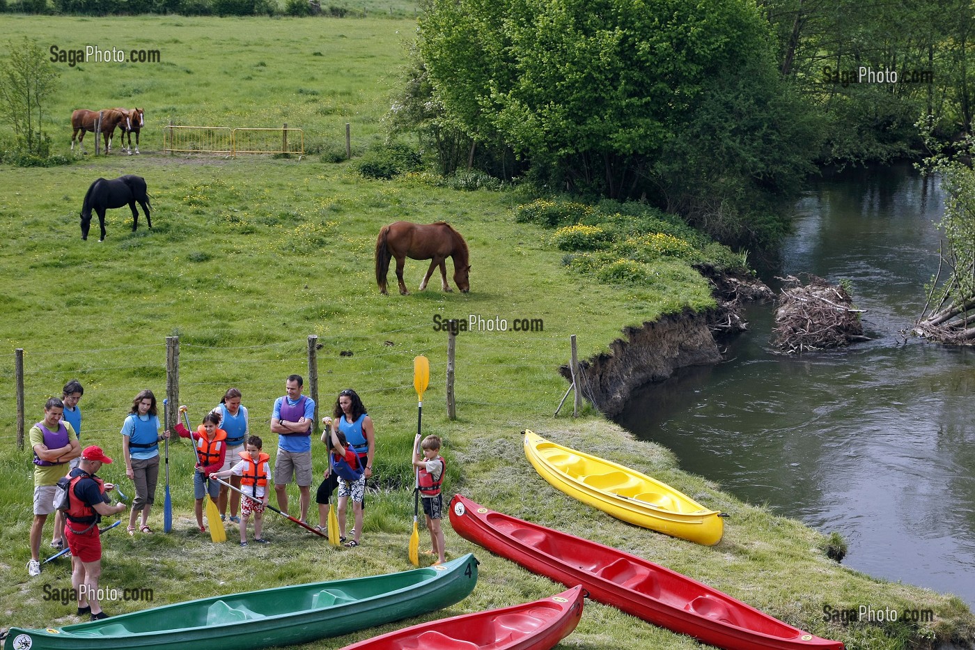Descriptif : PREPARATION ET REGLE DE SECURITE AVANT UNE DESCENTE EN CANOE KAYAK SUR LA RIVIERE L'HUISNE ENTRE MARGON ET NOGENT-LE-ROTROU, REGION DE PERCHE, EURE-ET-LOIR (28), FRANCE