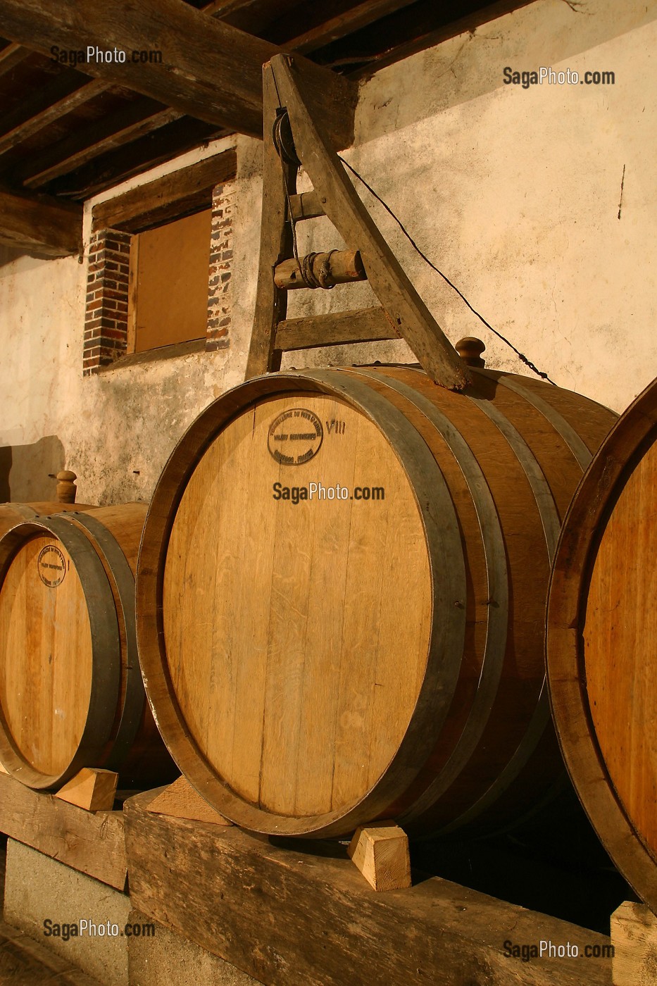 Descriptif : CAVE, DOMAINE DE L'HERMITIERE, PRODUCTION DE CIDRE, CALVADOS, JUS DE POMME, APERITIF, ORNE (61), NORMANDIE, FRANCE