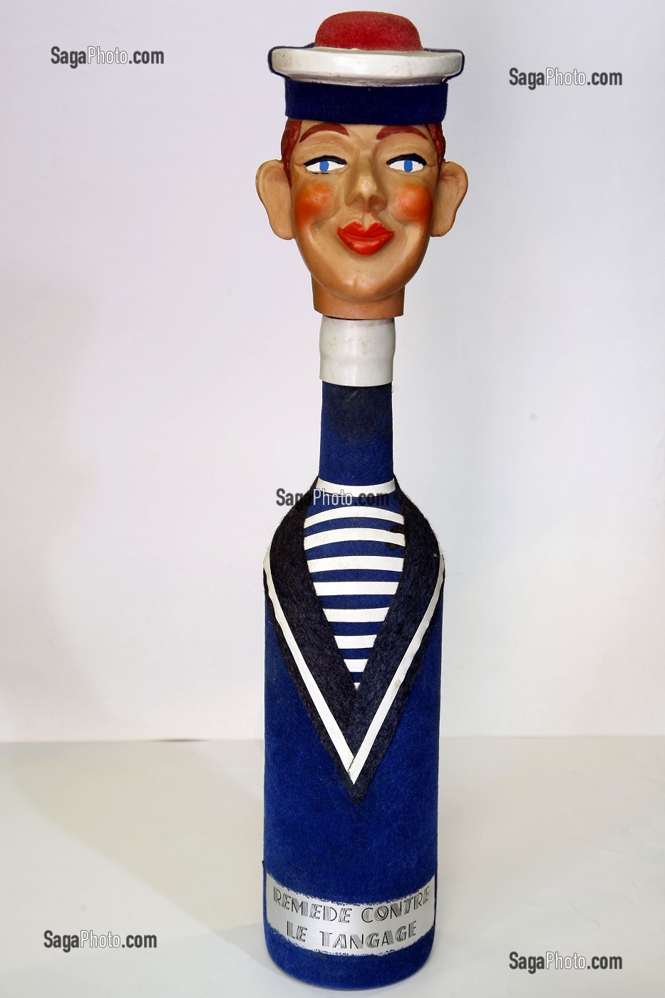 Descriptif : BOUTEILLE DE REMEDE CONTRE LE TANGAGE MAGASIN D’ANTIQUITES MARINE ‘LES TRANSATLANTIQUES’, LE HAVRE, SEINE-MARITIME (76), NORMANDIE, FRANCE