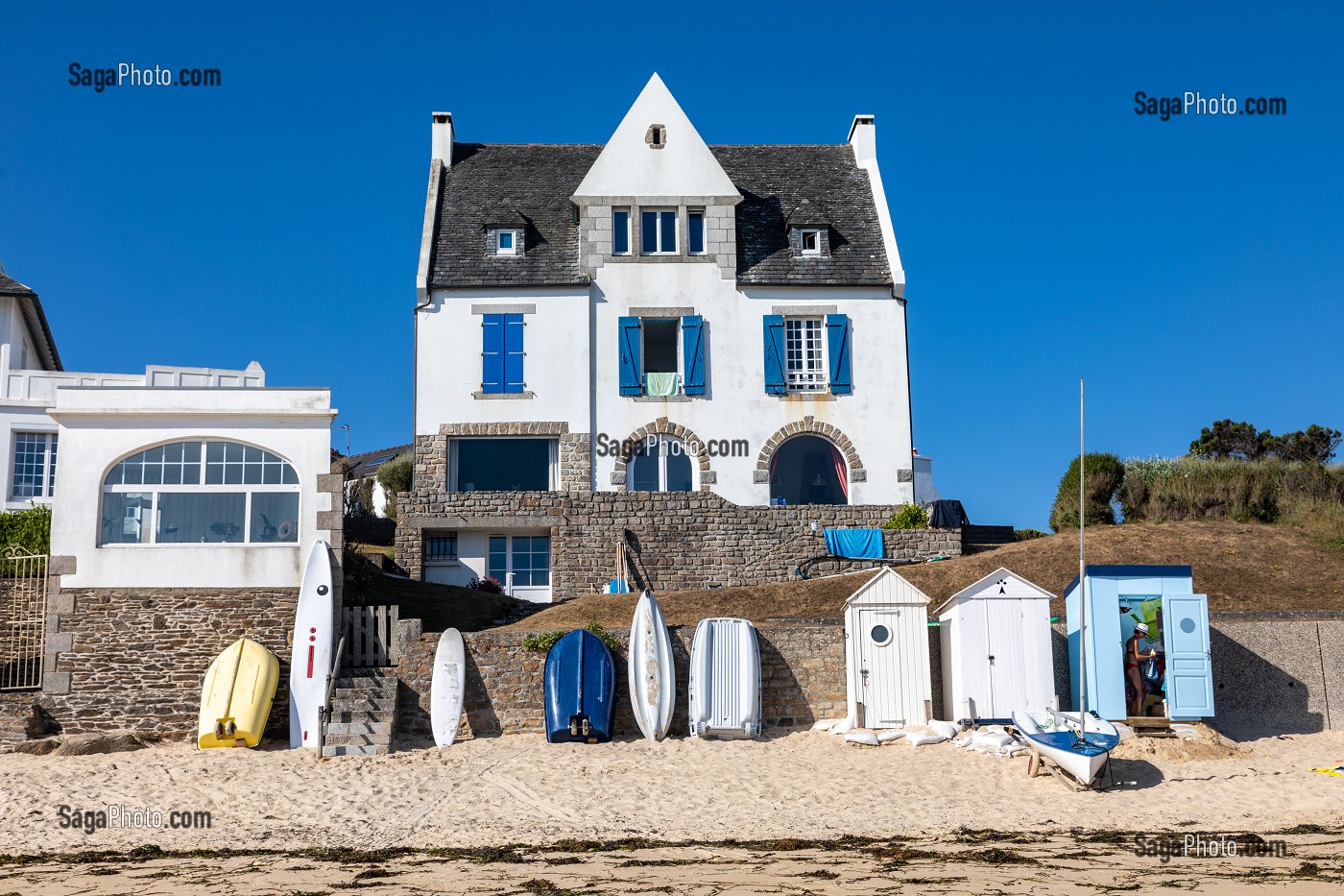 Descriptif : MAISON TRADITIONNELLE BRETONNE SUR LA PLAGE DE LA GREVE BLANCHE A CARANTEC, CARANTEC, FINISTERE, BRETAGNE, FRANCE