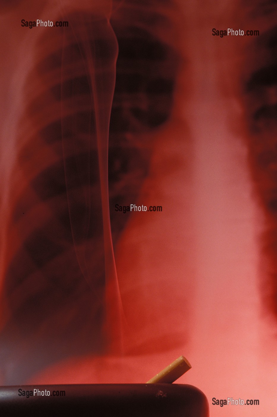 Descriptif : ILLUSTRATION TABAC, CIGARETTE DEVANT UNE RADIO DES POUMONS