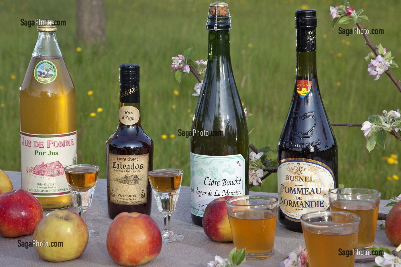 Mots clés : PHOTO COULEUR, HORIZONTALE, LARGEUR, FRANCE, EURE, NORMANDIE, NORMAND, NORMANDE, GASTRONOMIE REGIONALE, NATURE MORTE, PRODUIT ALIMENTAIRE, TERROIR, REGIONAL, BOISSON ALCOOLISEE, ALCOOL, DIGESTIF, APERITIF, BOUTEILLE, CIDRE, CALVADOS, POMMEAU, JUS DE FRUIT, POMME, PRE, SCENE CHAMPETRE, VERGER, PRINTEMPS, NATURE, PRODUIT NATUREL, FRUIT, RAFRAICHISSEMENT, SPECIALITE REGIONALE, PRODUIT DE TERROIR, CIDRE FERMIER