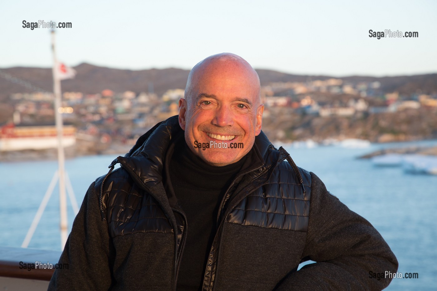 Mots clés : PERSONNAGE PUBLIC, HOMME, METEOROLOGUE, PRESENTATEUR, METEO, TELE, PETIT ECRAN, TV, TELEVISION, TF1, STATION DE RADIO, RTL, GROENLAND, TRANSPORT DE PASSAGERS, PAQUEBOT, BATEAU DE CROISIERE, DANEMARK, MER DE BAFFIN, BAIE DE DISKO, ILULISSAT, BATEAU, EUROPE, RIVAGES DU MONDE, CROISIERE, ASTORIA, TERRE POLAIRE, LOUIS BODIN, PREVISIONNISTE
