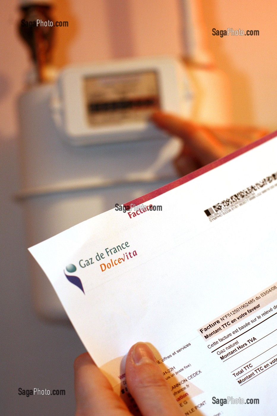 Descriptif : ILLUSTRATION AUGMENTATION DU PRIX DU GAZ, FACTURE ET COMPTEUR GAZ DE FRANCE, GDF