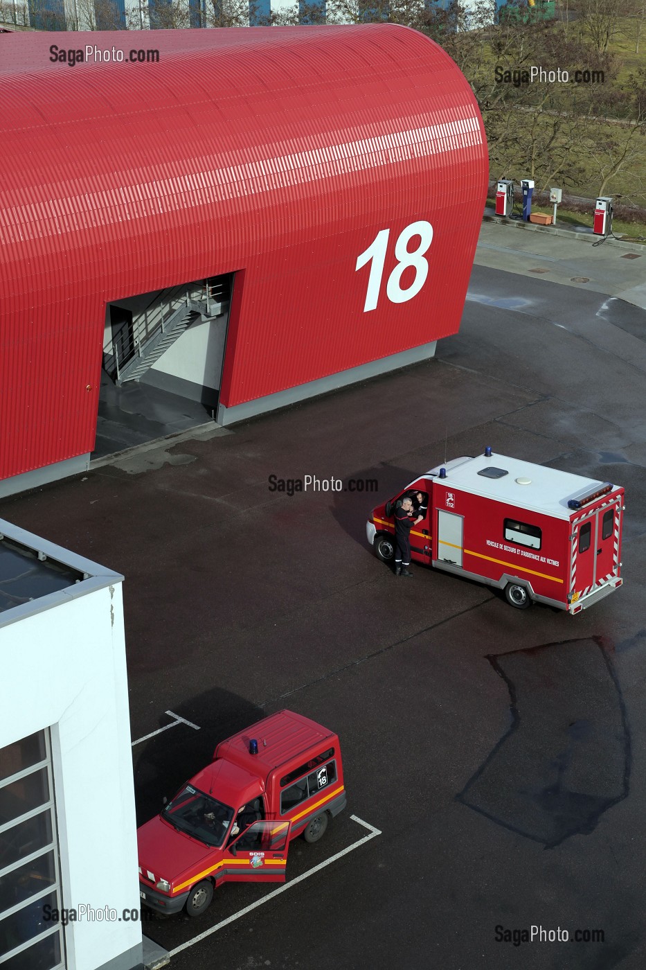 Mots clés : HAUTEUR, PHOTO VERTICALE, PERSONNAGE, METIER, SECURITE CIVILE, SAPEUR-POMPIER, SAPEURS-POMPIERS, COULEUR, ROUGE, VEHICULE DE SECOURS, CAMION DE POMPIERS, CENTRE D'INTERVENTION ET DE SECOURS, CASERNE DE POMPIERS, SECOURS, TELEPHONE D'URGENCE, NUMERO D'URGENCE, 18 112, URGENCE MEDICALE, VSAV, VSAB, AMBULANCE, ARCHITECTURE, CONSTRUCTION MODERNE, DESIGN ARCHITECTURAL