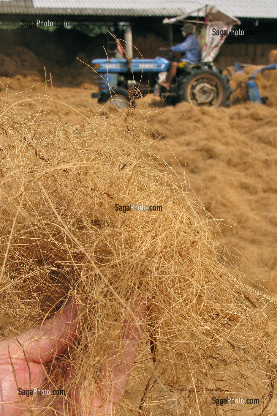 Descriptif : FIBRES ENTOURANT LA COQUE DE LA NOIX DE COCO UTILISEES POUR LA CONFECTION DES MATELAS, PROVINCE DE BANG SAPHAN, THAILANDE