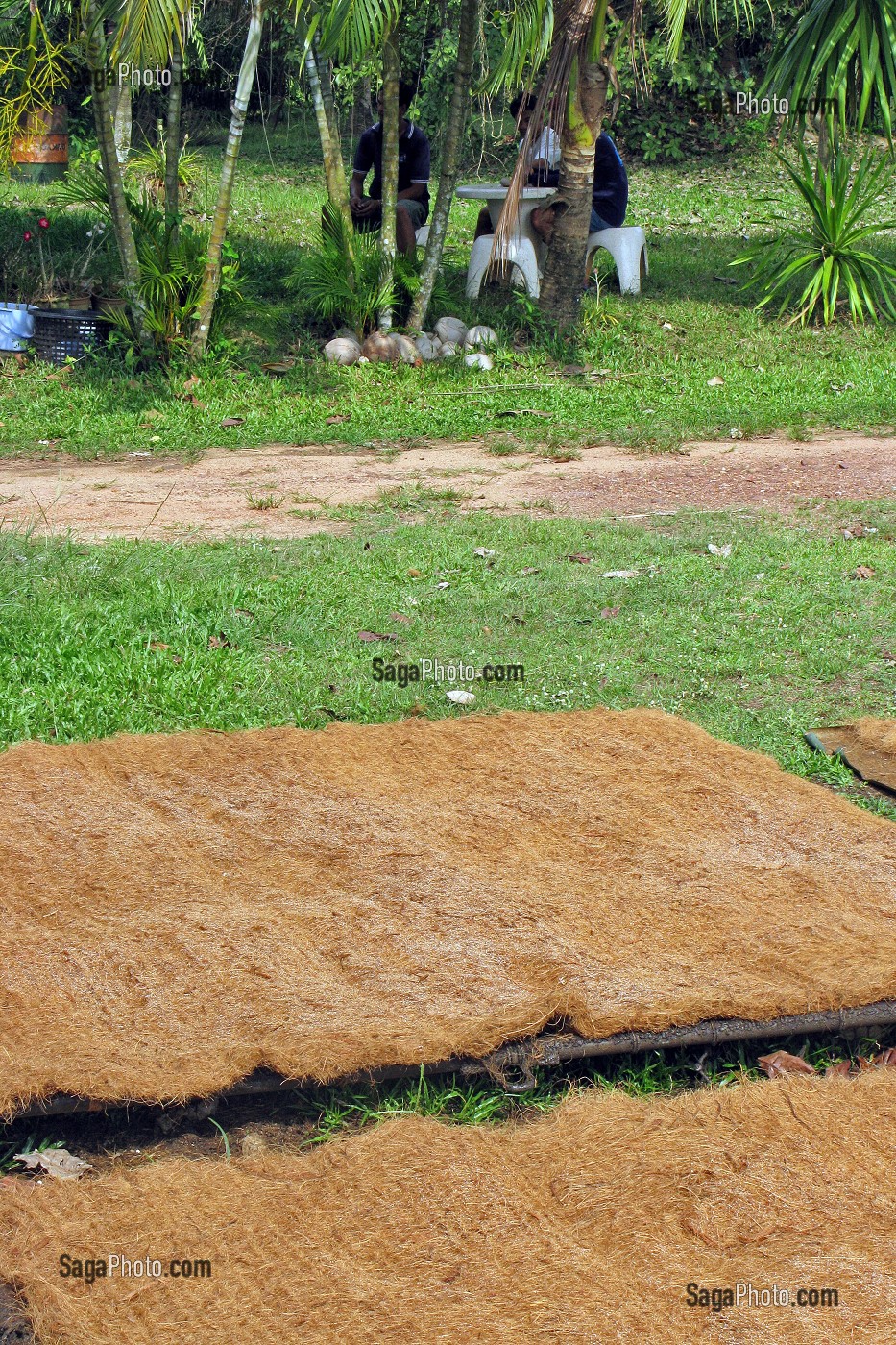 Descriptif : PLAQUES DE COIR LAMINES, FIBRES ENTOURANT LA COQUE DE LA NOIX DE COCO DES COCOTIERS UTILISE POUR LA CONFECTION DES MATELAS. PROVINCE DE BANG SAPHAN, THAILANDE